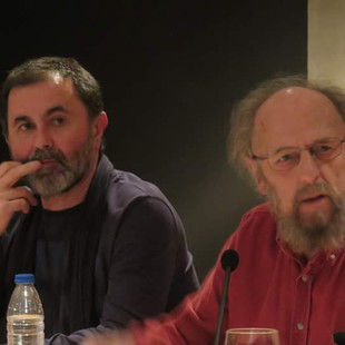 El poeta Francisco Álvarez Velasco presentó ayer en la Biblioteca Jovellanos su último libro de poemas, "Gregor Samsa frente a la ventana" (Hiperión), con el obtuvo el XXXI premio "Jaén" de poesía. Nacido en Cimanes de Tejar (1940), en León, Álvarez Velasco lleva años afincado en Gijón, donde ha sido profesor de Literatura. Es flamante premio "María Elvira Muñiz" de animación a la lectura. Fue presentado por el también poeta y profesor Aurelio González Ovies (en la foto, a la izquierda, junto a Álvarez Velasco).