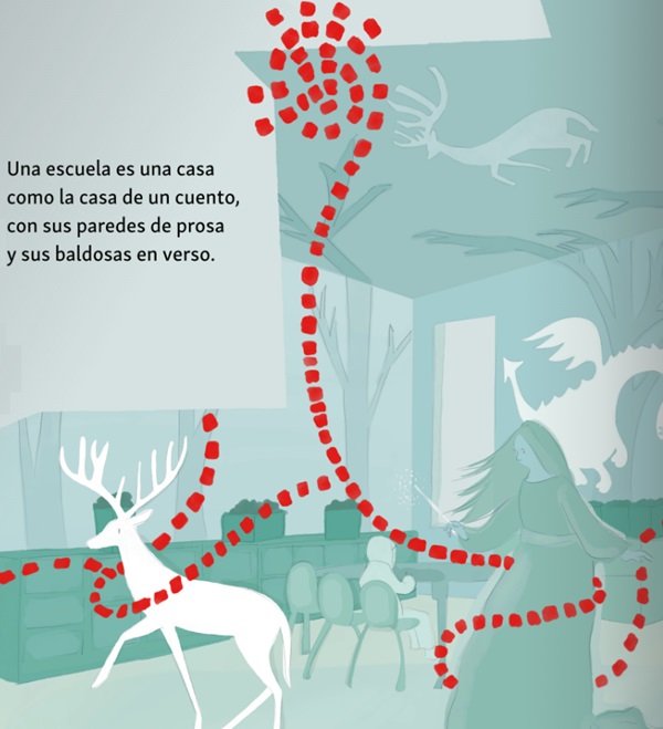 Homenaje a la figura del maestro y a las escuelas como vértices fundamentales de la educación y la convivencia en nuestra sociedad. El hilo conductor es un extenso poema, concebido en cuartetos octosílabos por el poeta asturiano, doctor en Filología Clásica y profesor de Filología Latina, Aurelio González Ovies. En sus versos se enumeran, con giros metafóricos, las numerosas virtudes y valores inherentes a este espacio de enseñanza y a la labor y compromiso que demuestran tanto los maestros como los estudiantes con sus conductas. La propuesta ofrece una versión digital complementaria optimizada para ser utilizada en la PDI disponible, habitualmente, en cada aula. El proyecto gráfico sobre el que se apoya esta sincera y sencilla iniciativa ha sido diseñado por Ester Sánchez, al mismo tiempo editora del sello que publica la obra y parte del equipo que gestiona la plataforma "hermana" Nubecuentos, proyectos caracterizados por un fuerte compromiso con la sostenibilidad y que apuestan por imprimir las obras en la misma comunidad en la que son concebidos.